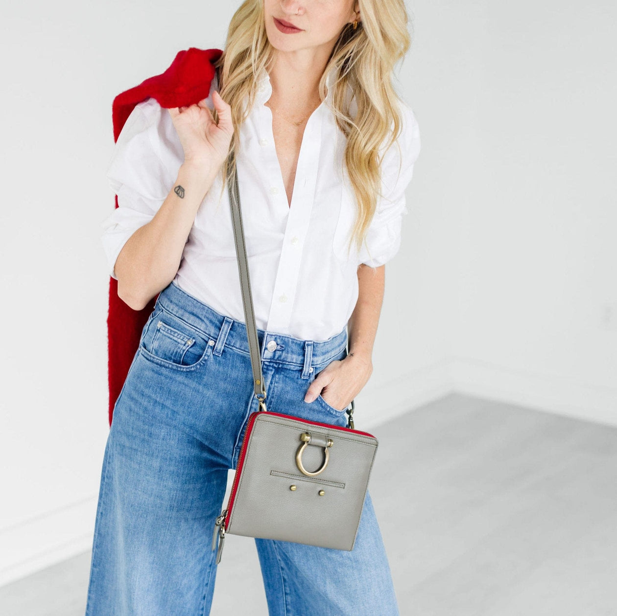 A small crossbody bag like our M Mini won’t be heavy, but it’ll carry those added items without a problem. The straps are removable, so it also functions as a gorgeous clutch or a small leather handbag.