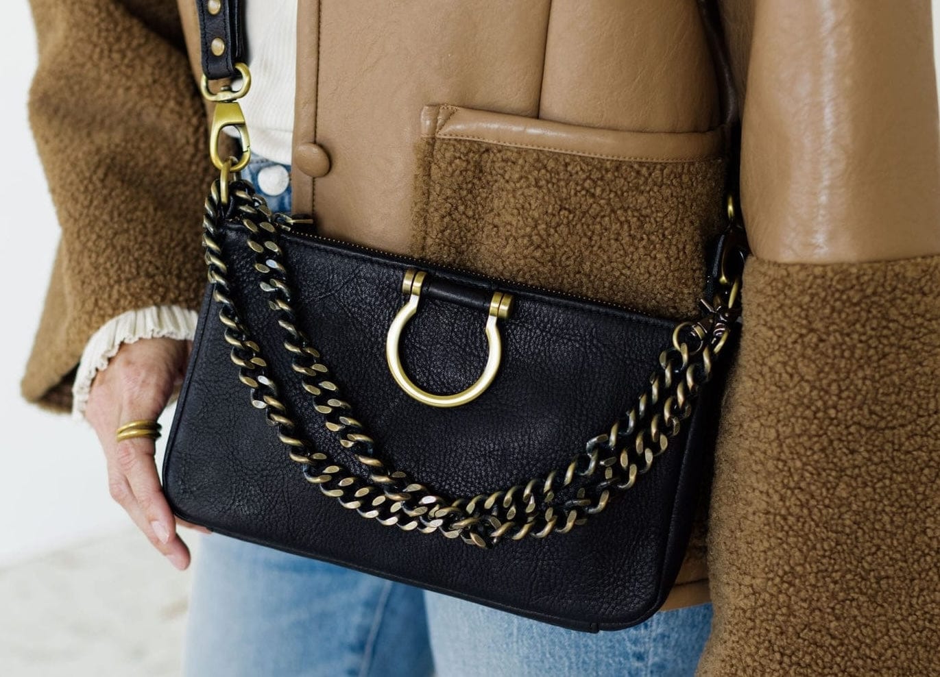 7 ways to wear this combo: Crossbody, crossbody using chain strap, shoulder bag, clutch, wallet, wristlet or belt bag.