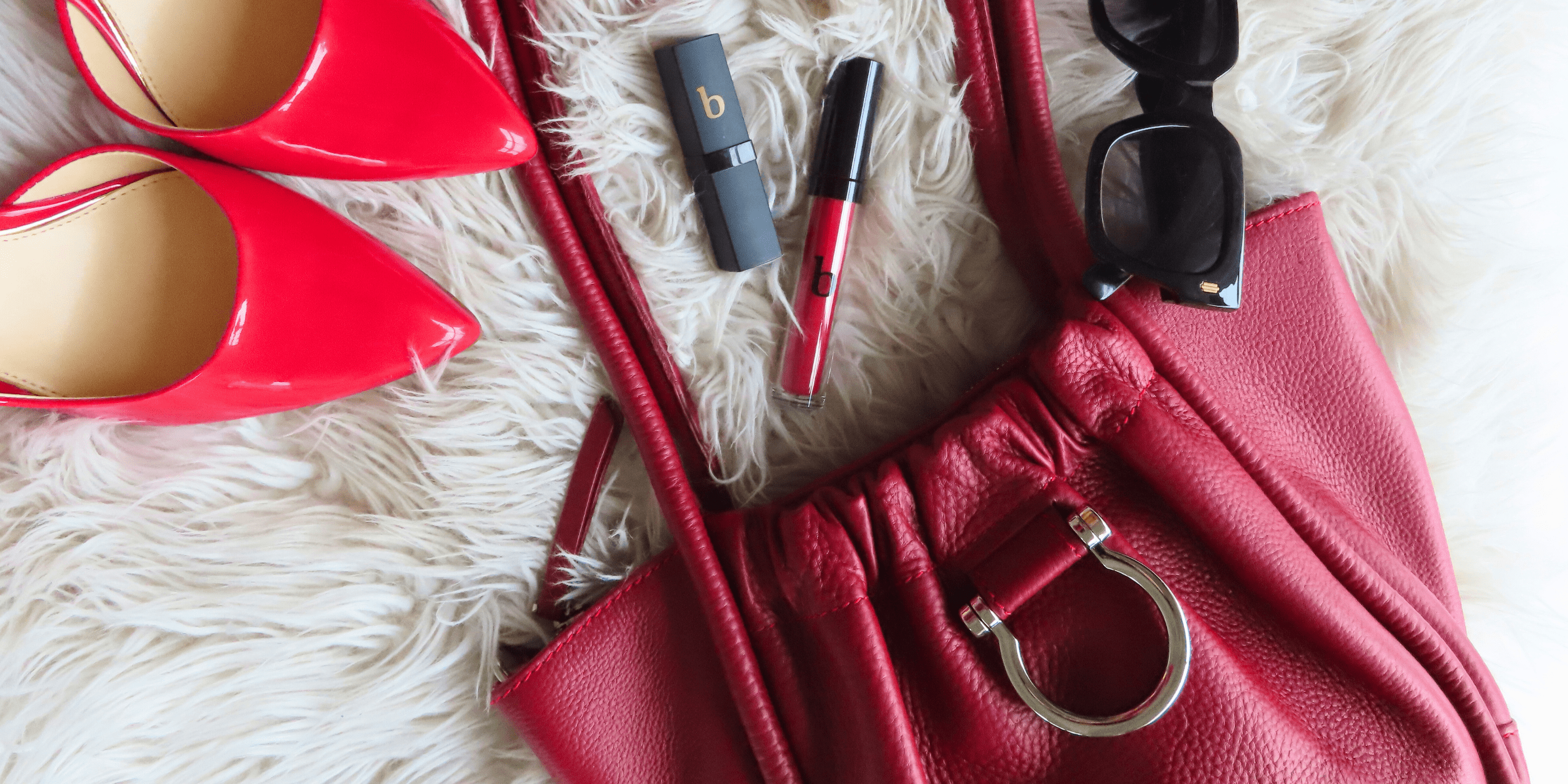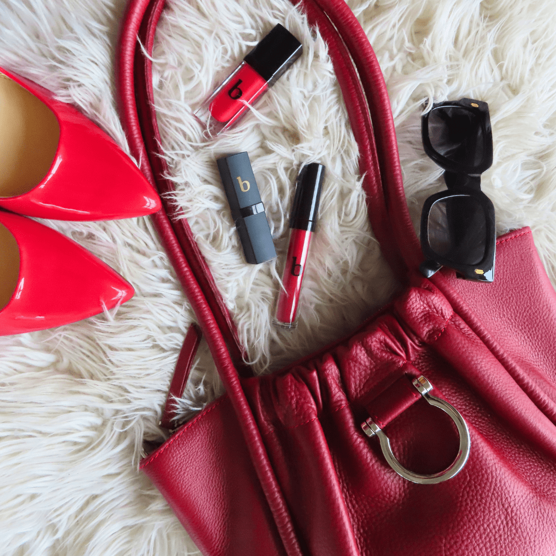 Red lips. Leather bag. Name a better combo.