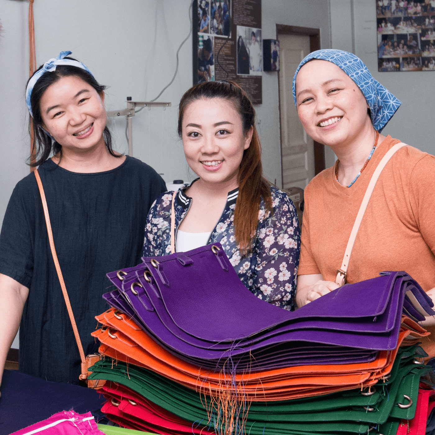 After a year or two, Siricahi and Kay realized that Brooke was serious about learning more about how each piece was made, but equally as excited to meet the women behind the bags, so they agreed to take her to the village to see the leather studio and meet the rest of the artisans. The moment that Brooke got a peek behind the scenes at the studio, her creativity was off to the races. She began tinkering with the leather hides and hardware samples she found in other local shops in Bangkok.As glamorous as that may sound, the truth is, Brooke's design process started by designing bags using paper, staples and tape (and perhaps a dash of 'I really can't study anymore' brain power as this was during the time when Brooke was meant to be writing her Masters thesis.)